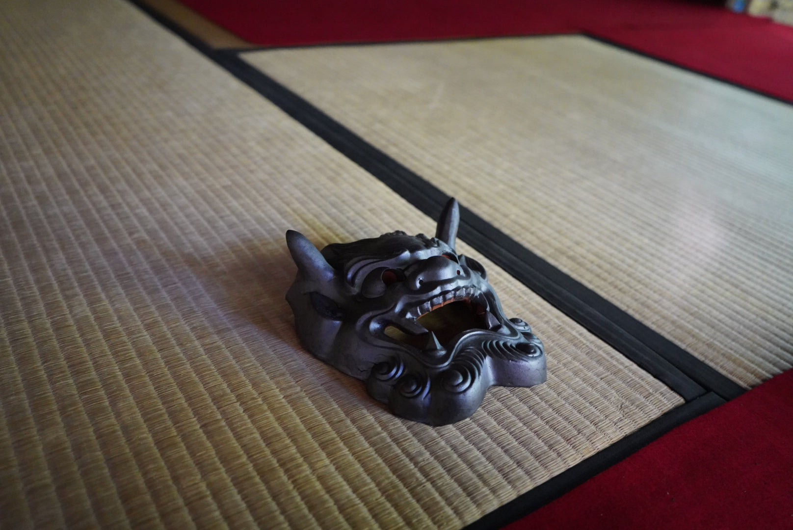 This ogre tile was made by Japanese roof tile craftman using the tool of bamboo and his hands.