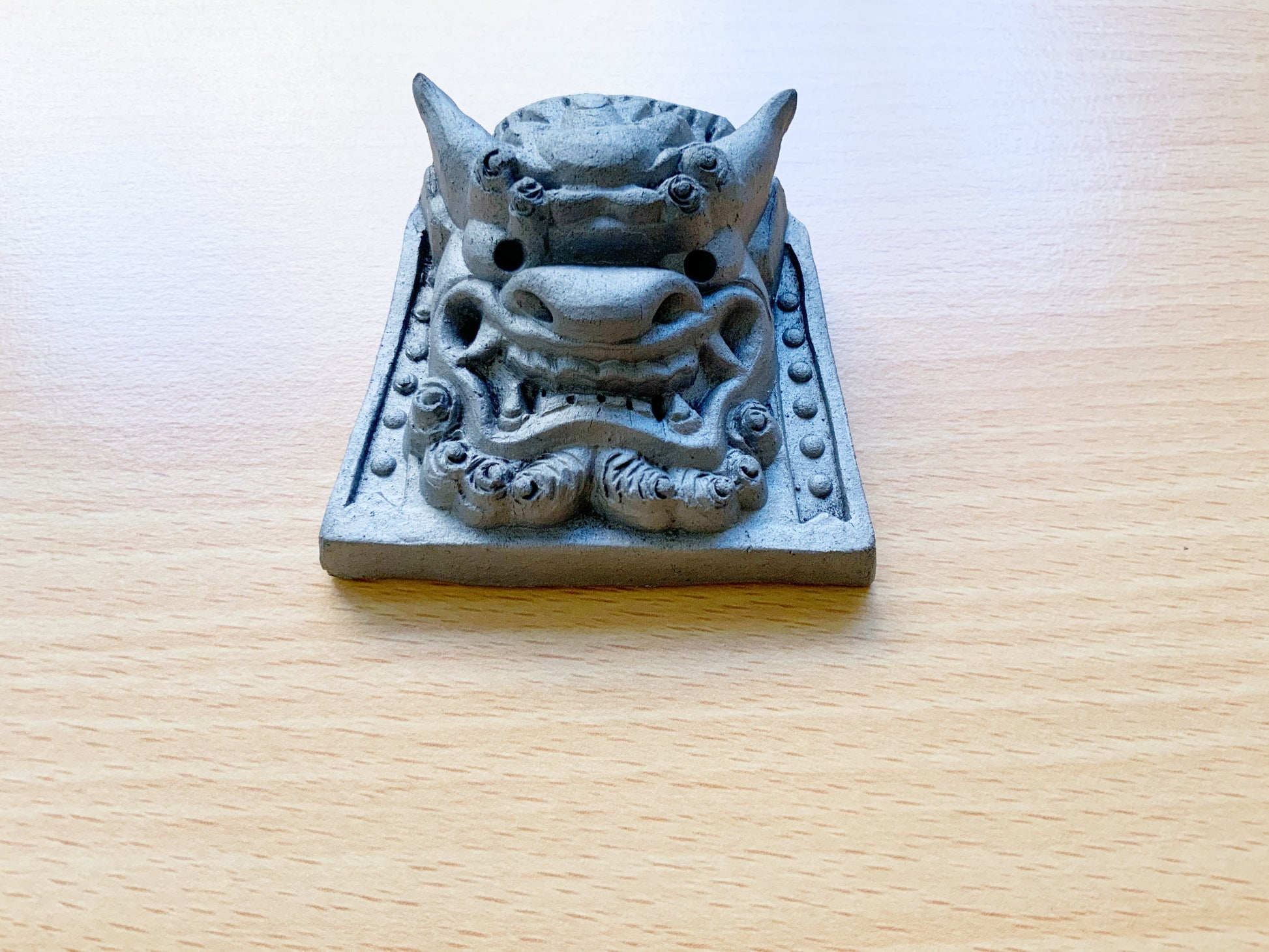 This ogre tile was made by Japanese roof tile craftman using the tool of bamboo and his hands.