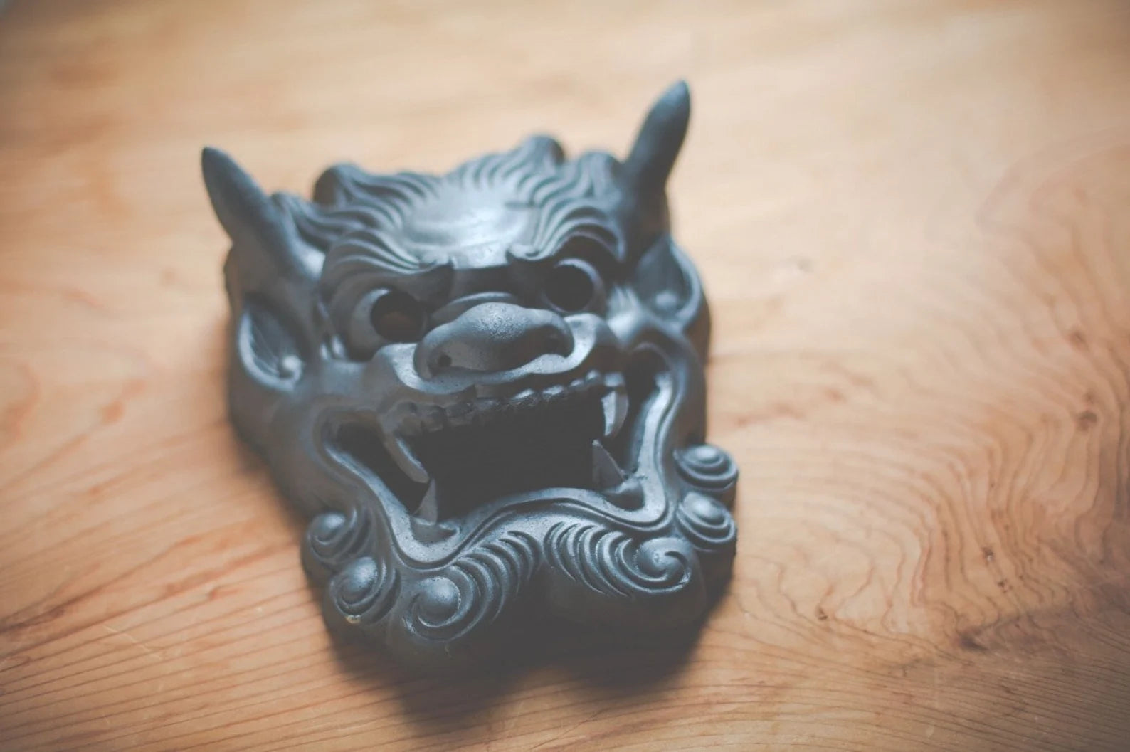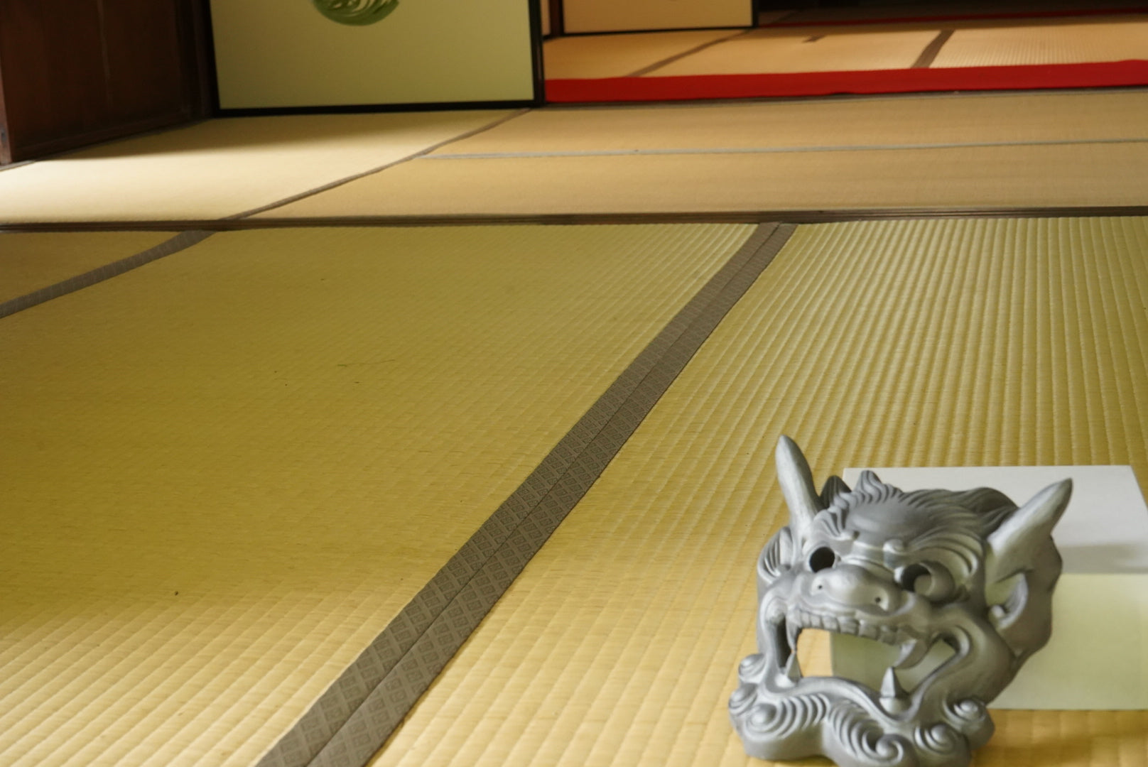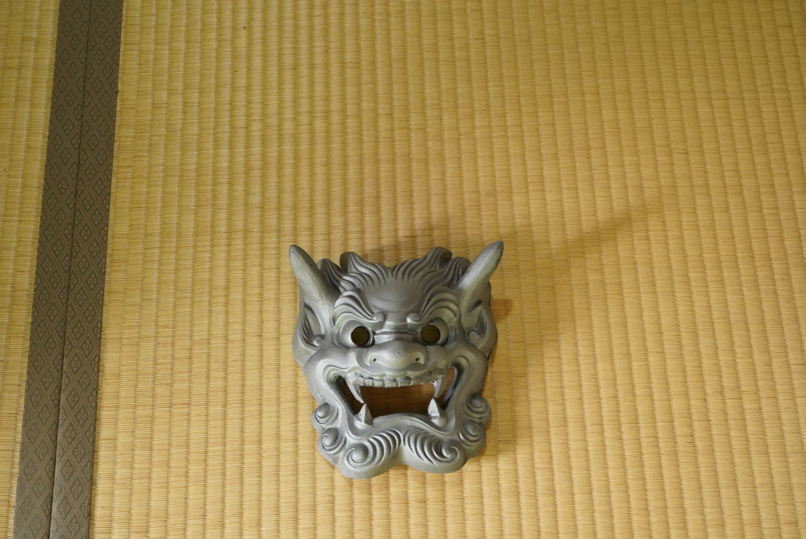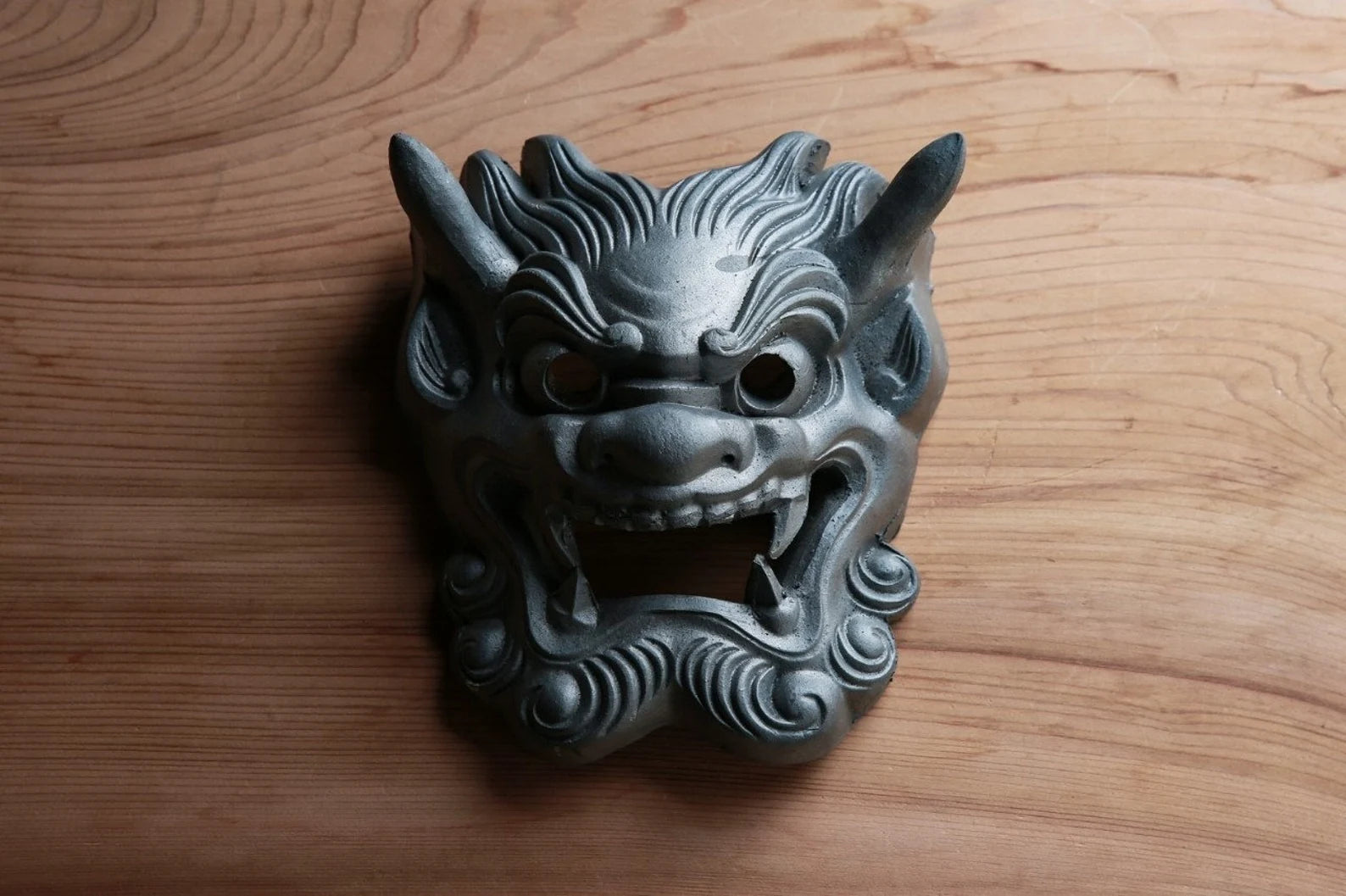 This ogre tile was made by Japanese roof tile craftman using the tool of bamboo and his hands.