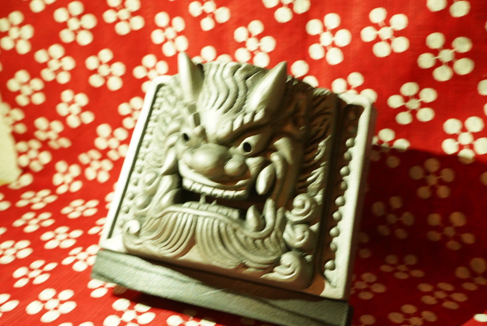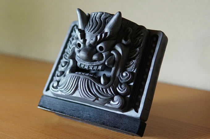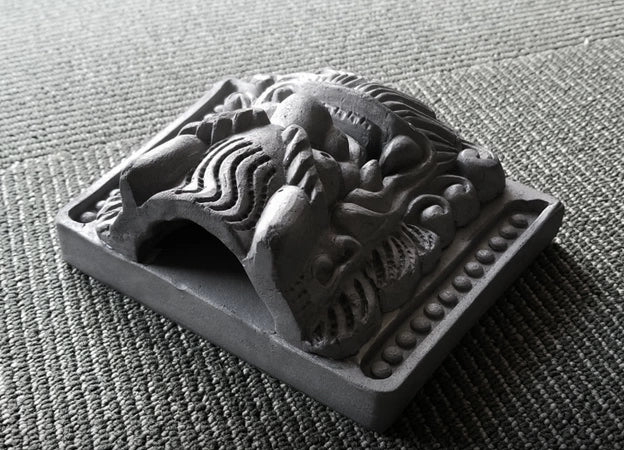 This ogre tile was made by Japanese roof tile craftman using the tool of bamboo and his hands.
