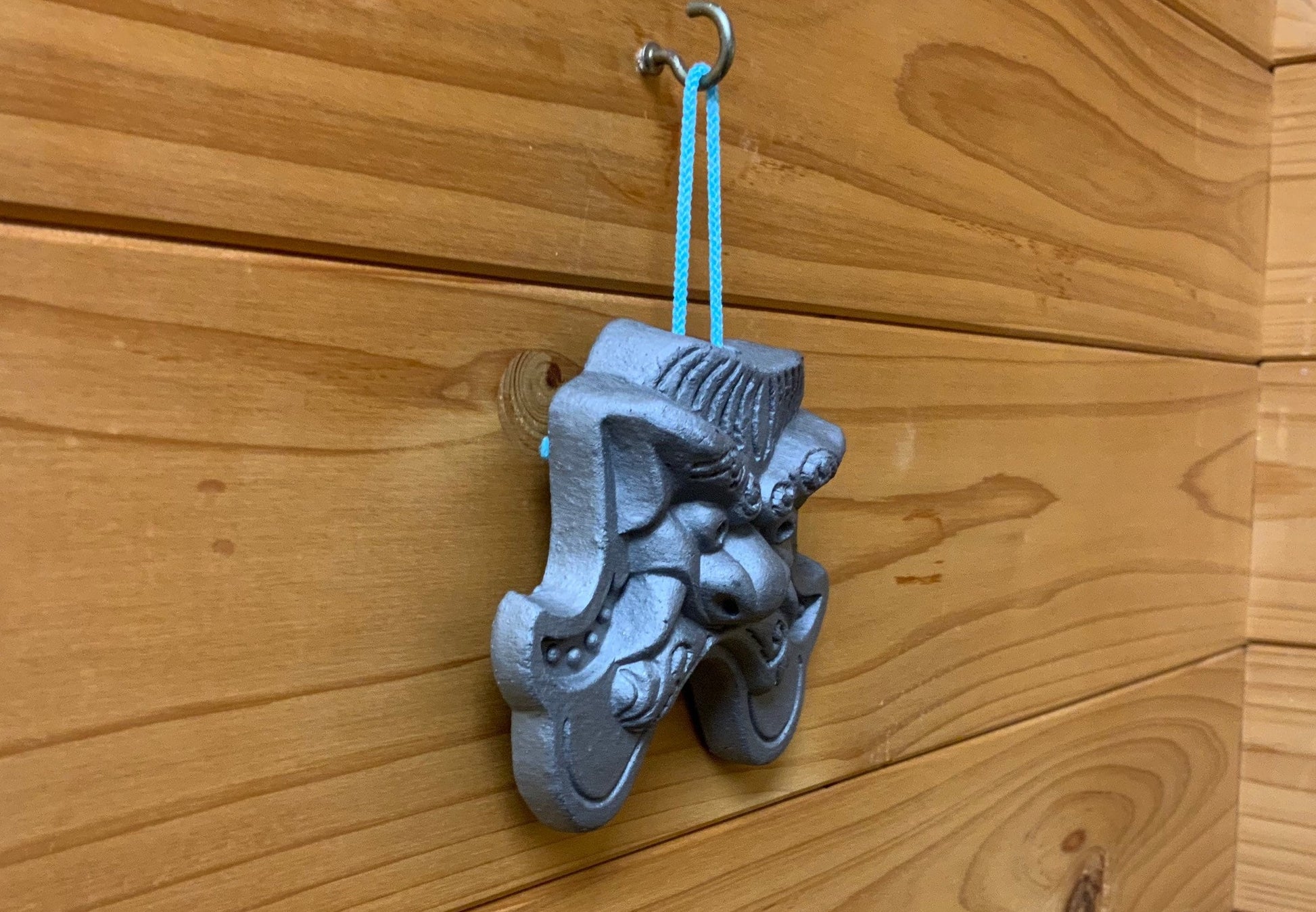 It has the string at top of his head, so it’s easy to hang on the wall.
