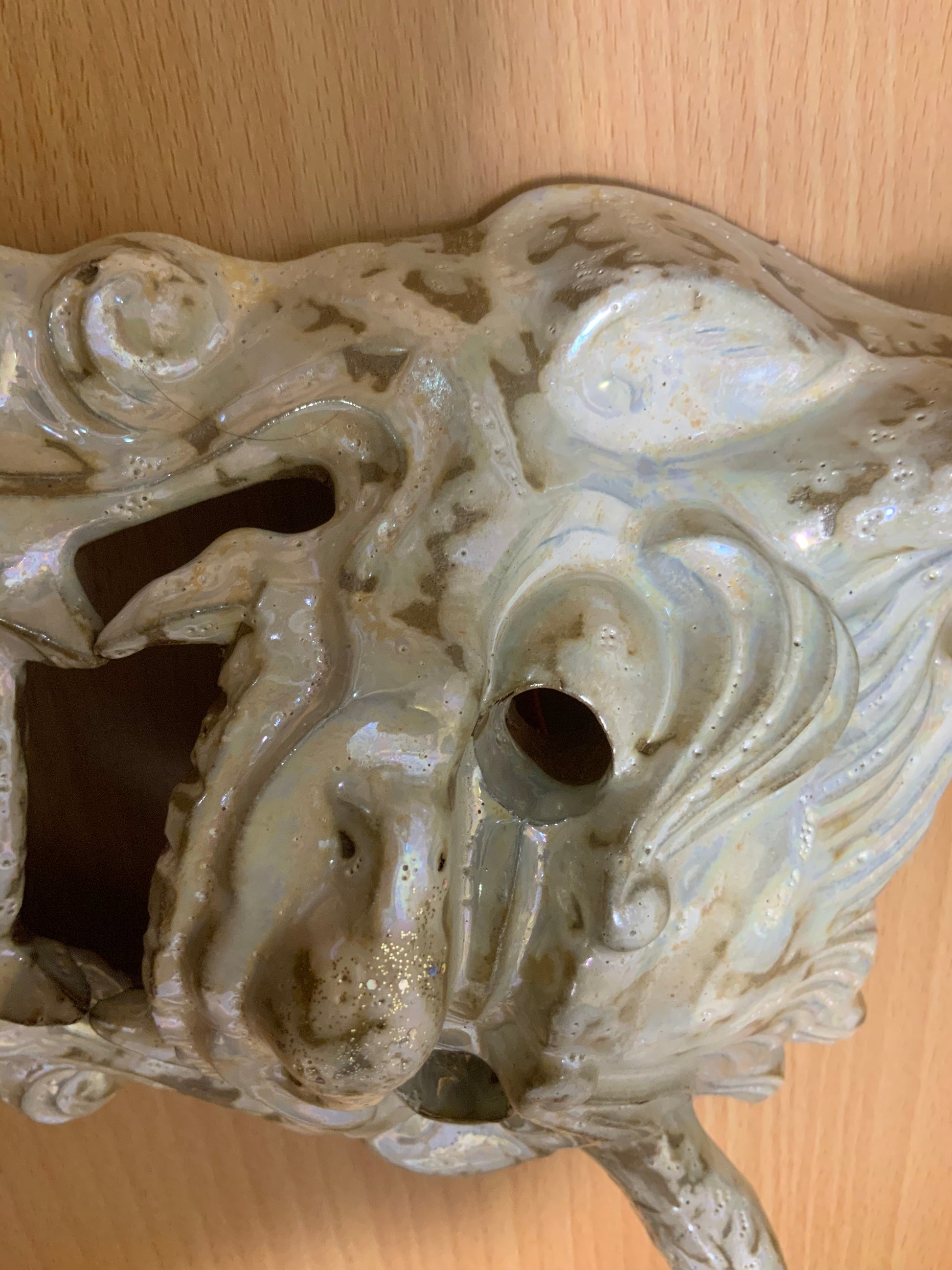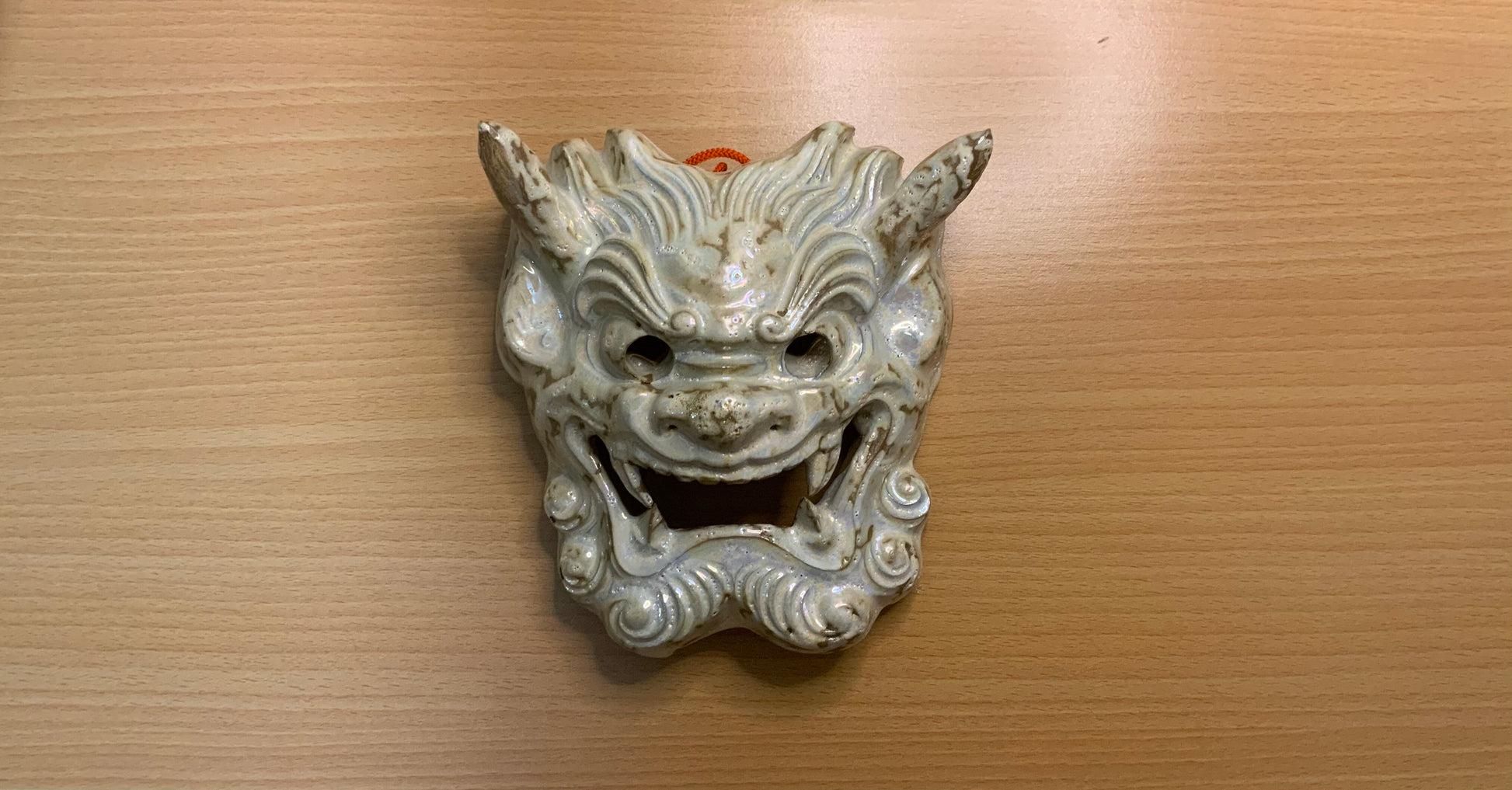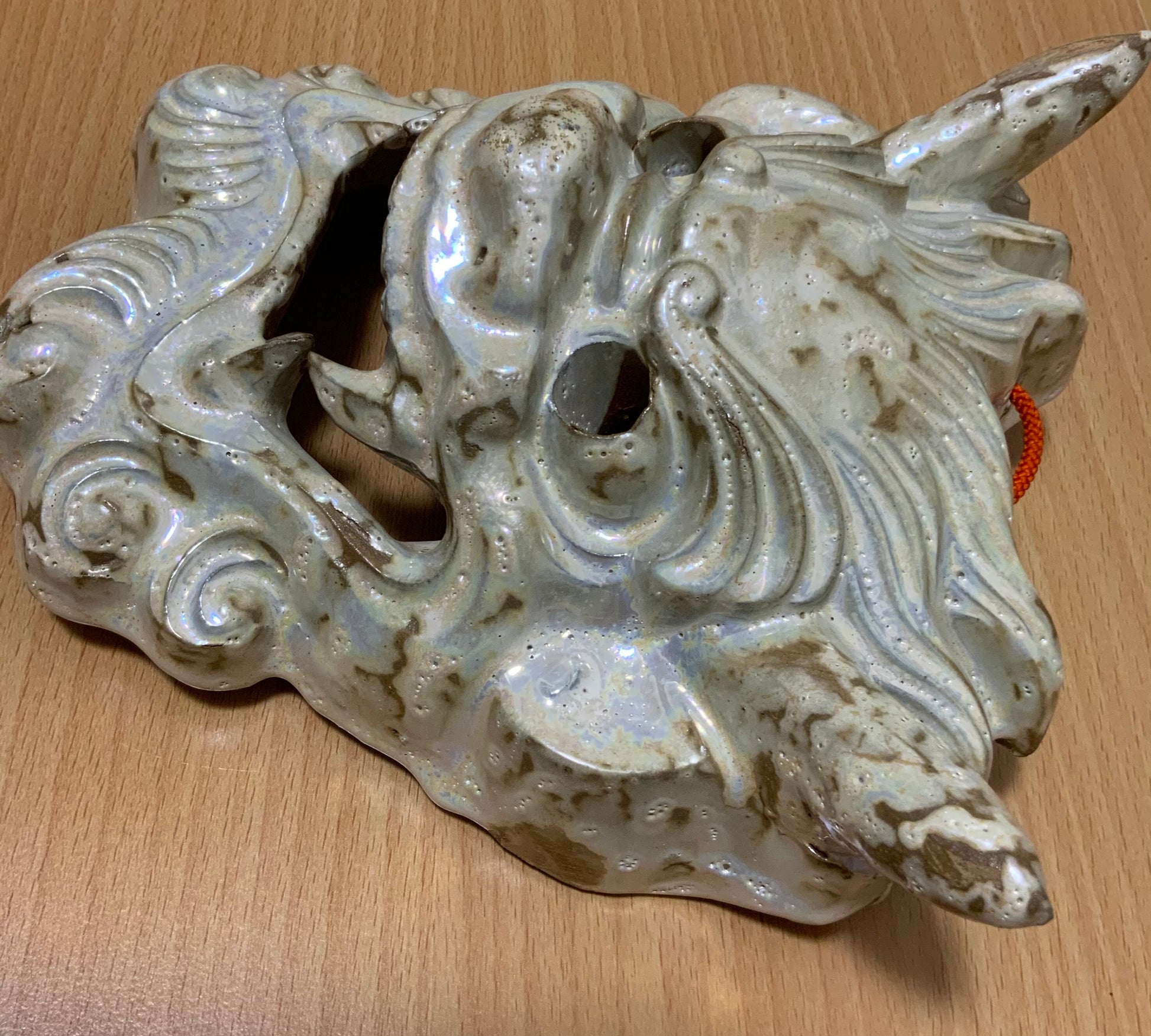 This ogre tile was made by Japanese roof tile craftman using the tool of bamboo and his hands.
